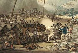 In 1766, the Royal Society hired Cook to travel to the Pacific Ocean to observe and record the transit of Venus across the Sun. He sailed from England in 1768, rounded Cape Horn and continued westward across the Pacific to arrive at Tahiti on April 13 1769, where the observations were to be made. However, the result of the observations were not as conclusive or accurate as had been hoped. Cook later mapped the complete New Zealand coastline, making only some minor errors. He then sailed west, reaching the south-eastern coast of the Australian continent on 19 April 1770, and in doing so his expedition became the first recorded Europeans to have encountered its eastern coastline. On 23 April he made his first recorded direct observation of indigenous Australians at Brush Island near Bawley Point, noting in his journal "...and were so near the Shore as to distinguish several people upon the Sea beach they appear'd to be of a very dark or black Colour but whether this was the real colour of their skins or the C[l]othes they might have on I know not." On April 29 Cook and crew made their first landfall on the mainland of the continent at a place now known as Kurnell, which he named Botany Bay after the unique specimens retrieved by the botanists Joseph Banks and Daniel Solander. He continued northwards, and a mishap occurred when Endeavour ran aground on a shoal of the Great Barrier Reef, on June 11. The ship was badly damaged and his voyage was delayed almost seven weeks while repairs were carried out on the beach (near the docks of modern Cooktown, at the mouth of the Endeavour River). Once repairs were complete the voyage continued, sailing through Torres Strait and on 22 August he landed on Possession Island, where he claimed the entire coastline he had just explored as British territory. He returned to England via the Cape of Good Hope and Saint Helena, arriving on 12 July, 1771.
