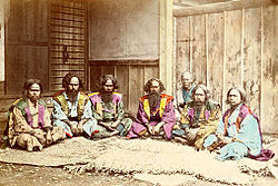 A Paleolithic culture around 30,000 BC constitutes the first known habitation of the Japanese archipelago. This was followed from around 14,000 BC (the start of the Jōmon period) by a Mesolithic to Neolithic semi-sedentary hunter-gatherer culture, who include ancestors of both the contemporary Ainu people and Yamato people, characterized by pit dwelling and rudimentary agriculture. Decorated clay vessels from this period are some of the oldest surviving examples of pottery in the world. Around 300 BC, the Yayoi people began to enter the Japanese islands, intermingling with the Jōmon. The Yayoi period, starting around 500 BC, saw the introduction of practices like wet-rice farming, a new style of pottery, and metallurgy, introduced from China and Korea.