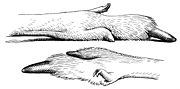 Europeans have long regarded kangaroos as strange animals. Early explorers described them as creatures that had heads like deer (without antlers), stood upright like men, and hopped like frogs. Combined with the two-headed appearance of a mother kangaroo, this led many back home to dismiss them as travellers' tales for quite some time. The first kangaroo to be exhibited in the western world was an example shot by John Gore, an officer on Captain Cook's Endeavour in 1770. The animal was shot and its skin and skull transported back to England whereupon it was stuffed (by taxidermists who had never seen the animal before) and displayed to the general public as a curiosity.
