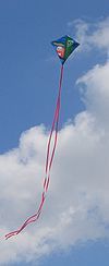 Kites can be designed with many different shapes, forms, and sizes. They can take the form of flat geometric designs, boxes and other three-dimensional forms, or modern sparless inflatable designs. Kites flown by children are often simple geometric forms (for example, the diamond). In Asia, children fly dried symmetrical leaves on sewing thread and sled-style kites made from sheets of folded writing paper.