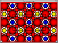 Geometry lets us visualize what the inside of a knot or link complement looks like by imagining light rays as traveling along the geodesics of the geometry. An example is provided by the picture of the complement of the Borromean rings. The inhabitant of this link complement is viewing the space from near the red component. The balls in the picture are views of horoball neighborhoods of the link. By thickening the link in a standard way, we obtain what are called horoball neighborhoods of the link components. Even though the boundary of a neighborhoods is a torus, when viewed by inside the link complement, it looks like a sphere, called a horoball. Each link component shows up as infinitely many horoballs (of one colour) as there are infinitely many light rays from the observer to the link component. The fundamental parallelogram (which is indicated in the picture), tiles both vertically and horizontally.
