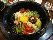Other popular dishes include bibimbap which literally means "mixed rice" (rice mixed with meat, vegetables, and red pepper paste) and naengmyeon (cold noodles). A common snack in Korea is kimbab, which is rice mixed with vegetables and meat wrapped with seaweed. While an increasingly wide variety of ingredients are used in kimbap, fish in either raw or cooked form is rarely used, perhaps due to kimbap's origin as a portable, packable snack and fish could quickly spoil if unrefrigerated.