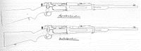 At the same time that the Hotchkiss heavy machine gun was introduced to the Norwegian Army, some people started considering modifying the Krag-Jørgensen to semi-automatic fire. Doing so would have multiplied the firepower of the infantry, allowing more weight of fire to be brought at a target. Most of the designs put forward were not very well thought out and few of the designers knew enough about firearms to be able to calculate the pressures and dimensions necessary. However, two designs were investigated further, and eventually one prototype was built.