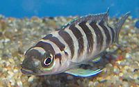 The lake holds at least 250 species of cichlid fish and 150 non-cichlid species, most of which live along the shore line down to a depth of approximately 600 feet (180 m). Lake Tanganyika is thus an important biological resource for the study of speciation in evolution. The largest biomass of fish, however, is in the pelagic zone (open waters) and is dominated by six species - two species of " Tanganyika sardine" and four species of predatory Lates (related to, but not the same as, the Nile Perch that has devastated Lake Victoria cichlids). Almost all (98%) of the Tanganyikan cichlid species are endemic (exclusively native) to the lake and many, such as fish from the brightly coloured Tropheus genus, are prized within the aquarium trade. This kind of elevated endemism also occurs among the numerous invertebrates in the lake, most especially the molluscs (which possess similar forms to that of many marine molluscs), crabs, shrimps, copepods, jellyfishes, leeches, etc.