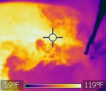 Thermal image of a sink full of hot water with cold water being added, showing how the hot and the cold water flow into each other.