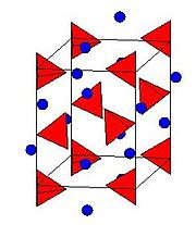The crystal structure of LAH belongs to the monoclinic crystal system and the space group is P21c. The crystal structure of LAH is illustrated to the right. The structure consists of Li atoms surrounded by five AlH4 tetrahedra. The Li+ centers are bonded to one hydrogen atom from each of the surrounding tetrahedra creating a bipyramid arrangement. The unit cell is defined as follows: a = 4.82, b = 7.81, and c = 7.92 Å, α = γ = 90° and β = 112 °. At high pressures (>2.2GPa) a phase transition occurs to give β-LAH.