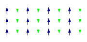 Like ferromagnetism, ferrimagnets retain their magnetization in the absence of a field. However, like antiferromagnets, neighboring pairs of electron spins like to point in opposite directions. These two properties are not contradictory, due to the fact that in the optimal geometrical arrangement, there is more magnetic moment from the sublattice of electrons which point in one direction, than from the sublattice which points in the opposite direction.