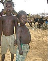 Kwashiorkor (‘displaced child’) is mainly caused by inadequate protein intake resulting in a low concentration of amino acids. The main symptoms are edema, wasting, liver enlargement, hypoalbuminaemia, steatosis, and possibly depigmentation of skin and hair. Kwashiorkor is identified by swelling of the extremities and belly, which is deceiving of actual nutritional status.