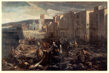 With the decline of the Roman Empire the town fell into the hands of the Visigoths. Eventually Frankish kings succeeded in taking the town in the mid 6th century. Emperor Charlemagne and the Carolingian dynasty granted civic power to Marseille, which remained a major French trading port until the medieval period. The city regained much of its wealth and trading power when it was revived in the 10th century by the counts of Provence. In 1262, the city revolted under Bonifaci VI de Castellana and Hugues des Baux, cousin of Barral des Baux, against the rule of the Angevins but was put down by Charles I. In 1348, the city suffered terribly from the bubonic plague, which continued to strike intermittently until 1361. As a major port, it is believed Marseille was one of the first places in France to encounter the epidemic, and some 15,000 people died in a city that had a population of 25,000 during its period of economic prosperity in the previous century. The city's fortunes declined still further when it was sacked and pillaged by the Aragonese in 1423.