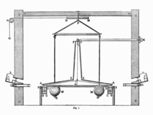 - "a large vessel of water placed in an elevated position; to the bottom of this vessel was soldered a pipe of small diameter giving a thin jet of water, which we collected in a small glass during the time of each descent, whether for the whole length of the channel or for a part of its length; the water thus collected was weighed, after each descent, on a very accurate balance; the differences and ratios of these weights gave us the differences and ratios of the times, and this with such accuracy that although the operation was repeated many, many times, there was no appreciable discrepancy in the results."