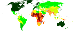 Some economists such as Guy Pfeffermann say that other non-monetary indicators of "absolute poverty" are also improving. Life expectancy has greatly increased in the developing world since WWII and is starting to close the gap to the developed world where the improvement has been smaller. Even in Sub-Saharan Africa, the least developed region, life expectancy increased from 30 years before World War II to a peak of about 50 years before the HIV pandemic and other diseases started to force it down to the current level of 47 years. Child mortality has decreased in every developing region of the world. The proportion of the world's population living in countries where per-capita food supplies are less than 2,200 calories (9,200 kilojoules) per day decreased from 56% in the mid-1960s to below 10% by the 1990s. Between 1950 and 1999, global literacy increased from 52% to 81% of the world. Women made up much of the gap: Female literacy as a percentage of male literacy has increased from 59% in 1970 to 80% in 2000. The percentage of children not in the labor force has also risen to over 90% in 2000 from 76% in 1960. There are similar trends for electric power, cars, radios, and telephones per capita, as well as the proportion of the population with access to clean water.