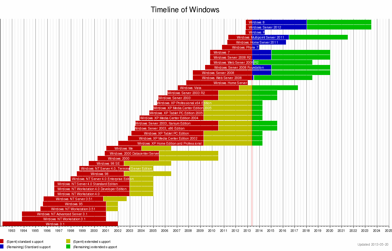 | April 2003 | Windows Server 2003 | NT 5.2.3790 | Extended Support for SP2 until July 14, 2015. (RTM and SP1 unsupported). | 8 | 9.0c |