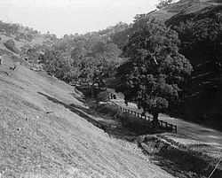 When Adelaide was first planned and mapped out by Col. William Light, Mount Osmond received the three allotments 1070, 1277 and 1278. While much of Adelaide was relatively quickly bought (but not necessarily settled) Mount Osmond did not enjoy any early buyers. The first reported activity in the area was after the mining rush of Glen Osmond due to the Wheal Watkins and Wheal Gawler mines. Lot 1277 yielded a mine in Slaughterhouse Gully but it was worked only briefly. Subsequent finds of bluestone proved fruitful and the mineral was extracted until 1900, when mining ended and the last of the mines were either filled in or cordoned off. Some entrances to these former mines can still be found today.
