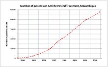The official prevalence of HIV in Mozambique in 2011 was 11.5% for the population in the age range between 15 and 49 years (a common reference for HIV statistics). This is lower than several of the neighbouring countries in Southern Africa. For the southern parts of the country (Maputo and Gaza provinces) the official figures are more than twice as high as the national average. In 2011 the health authorities estimated about 1.7 million Mozambicans were HIV-positive, of whom 600,000 were in need of anti-retroviral treatment. As per December 2011 240,000 were receiving such treatment. According to the 2011 UNAIDS Report, the HIV/AIDS epidemic in Mozambique seems to be leveling off.