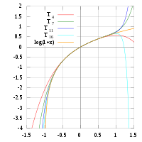 (1+x) only provide accurate approximations in the range -1 < x ≤ 1. Note that, for x > 1, the Taylor polynomials of higher degree are worse approximations.