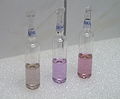 The sharp absorption bands of neodymium cause the glass colour to change under different lighting conditions, being reddish-purple under daylight or yellow incandescent light, but blue under white fluorescent lighting, or greenish under trichromatic lighting. This colour-change phenomenon is highly prized by collectors. In combination with gold or selenium, beautiful red colors result. Since neodymium coloration depends upon " forbidden" f-f transitions deep within the atom, there is relatively little influence on the color from the chemical environment, so the color is impervious to the thermal history of the glass. However, for the best colour, iron-containing impurities need to be minimized in the silica used to make the glass. The same forbidden nature of the f-f transitions makes rare-earth colorants less intense than those provided by most d-transition elements, so more has to be used in a glass to achieve the desired colour intensity. The original Moser recipe used about 5% of neodymium oxide in the glass melt, a sufficient quantity such that Moser referred to these as being "rare earth doped" glasses. Being a strong base, that level of neodymium would have affected the melting properties of the glass, and the lime content of the glass might have had to be adjusted accordingly.