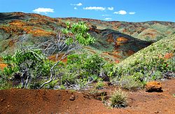 New Caledonia has its own version of maquis (maquis minier) occurring on metalliferous soils, mostly in the south. The soils of ultramafic rocks (mining terrains) have been a refuge for many native flora species because they are toxic and their mineral content is poorly suited to most foreign species of plants.