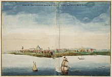 A permanent European presence in New Netherland began in 1624 with the founding of a Dutch fur trading settlement on Governors Island. In 1625 construction was started on a citadel and a Fort Amsterdam on Manhattan Island, later called New Amsterdam (Nieuw Amsterdam). The colony of New Amsterdam was centered at the site which would eventually become Lower Manhattan. The location of Dutch colonial Director-General Peter Minuit purchased the island of Manhattan from the Canarsie, a small band of the Lenape, in 1626 for a value of 60 guilders (about $1000 in 2006); a disproved legend says that Manhattan was purchased for $24 worth of glass beads.