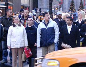 | Clockwise from top: Midtown Manhattan, the United Nations Headquarters, the Statue of Liberty, the Brooklyn Bridge, Central Park, Times Square, and the Unisphere in Queens | |||
