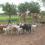 But for the most part, rural residents engaged in crop tending are clustered in the south centre and south west of the nation, in those areas (the Sahel) which can expect to receive between 300 to 600 mm (12 to 24 in) of rainfall annually. A small area in the southern tip of the nation, surrounding Gaya can expect to receive 700 to 900 mm (28 to 35 in) or rainfall. Northern areas which support crops, such as the southern portions of the Aïr Massif and the Kaouar oasis, rely upon oases and a slight increase in rainfall due to mountain effects. Large portions of the northwest and far east of the nation, while within the Sahara desert, see just enough seasonal rainfall to support semi-nomadic animal husbandry. The populations of these areas, mostly Tuareg, Wodaabe – Fula, and Toubou, travel south (a process called transhumance) to pasture and sell animals in the dry season, north into the Sahara in the brief rainy season.