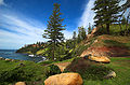 The evergreen Norfolk Island pine is a symbol of the island and thus pictured on its flag (see illustration). Native to the island, the pine is a key export industry for Norfolk Island, being a popular ornamental tree on mainland Australia, where two related species grow, and also in Europe.