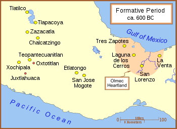 The Olmec flourished during Mesoamerica's Formative period, dating roughly from as early as 1500 BCE to about 400 BCE. Pre-Olmec cultures had flourished in the area since about 2500 BCE, but by 1600–1500 BCE Early Olmec culture had emerged centered around the San Lorenzo Tenochtitlán site near the coast in southeast Veracruz. They were the first Mesoamerican civilization and laid many of the foundations for the civilizations that followed. Among other "firsts", the Olmec appeared to practice ritual bloodletting and played the Mesoamerican ballgame, hallmarks of nearly all subsequent Mesoamerican societies.