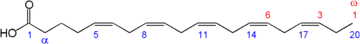 | Eicosatetraenoic acid (ETA) | 20:4 (n−3) | all-cis-8,11,14,17-eicosatetraenoic acid |