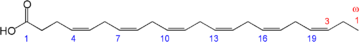 | Eicosatrienoic acid (ETE) | 20:3 (n−3) | all-cis-11,14,17-eicosatrienoic acid |