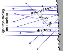 The propagation of light through the core of an optical fibre is based on total internal reflection of the lightwave. Rough and irregular surfaces, even at the molecular level, can cause light rays to be reflected in random directions. This is called diffuse reflection or scattering, and it is typically characterized by wide variety of reflection angles.