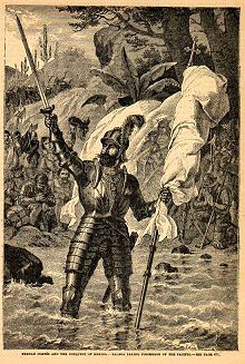Rodrigo de Bastidas, sailing westward from Venezuela in 1501 in search of gold, was the first European to explore the isthmus of Panama. A year later, Christopher Columbus visited the isthmus and established a short-lived settlement in the Darien. Vasco Núñez de Balboa's tortuous trek from the Atlantic to the Pacific in 1513 demonstrated that the Isthmus was, indeed, the path between the seas, and Panama quickly became the crossroads and marketplace of Spain's empire in the New World. Gold and silver were brought by ship from South America, hauled across the isthmus, and loaded aboard ships for Spain. The route became known as the Camino Real, or Royal Road, although it was more commonly known as Camino de Cruces (Road of the Crosses) because of the abundance of gravesites along the way.