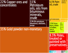 Papua New Guinea is richly endowed with natural resources, including mineral and renewable resources, such as forests, marine (including a large portion of the world's major remaining tuna stocks), and in some parts for agriculture. The rugged terrain, including high mountain ranges and valleys, swamps and islands, and high cost of developing infrastructure, combined with other factors, including serious law and order problems in some centres, and the system of customary land title makes it difficult for outside developers, whilst local developers are also handicapped by years of deficient investment in education, health, ICT and access to finance. Agriculture, both for subsistence and cash crops provides a livelihood for 85% of the population and continues to provide some 30% of GDP. Mineral deposits, including gold, oil, and copper, account for 72% of export earnings. Oil palm production has grown steadily over recent years (largely from estates, but with extensive outgrower output), with palm oil now the main agricultural export, but in terms of households participating coffee remains the major export crop (produced largely in the Highlands provinces), followed by cocoa and coconut oil/ copra from the coastal areas, each largely produced by smallholders and tea, produced on estates and rubber.
