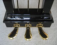 Pianos have had pedals, or some close equivalent, since the earliest days. (In the 18th century, some pianos used levers pressed upward by the player's knee instead of pedals.) Most grand pianos in the US have three pedals: the soft pedal (una corda), sostenuto, and sustain pedal (from left to right, respectively), while in Europe, the standard is two pedals: the soft pedal and the sustain pedal. Most modern upright pianos also have three pedals: soft pedal, practice pedal and sustain pedal, though older or cheaper models may lack the practice pedal. In Europe the standard for upright pianos is two pedals: the soft and the sustain pedals.