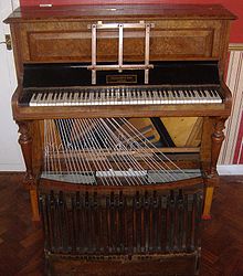 In 1954 a German company exhibited a wire-less piano at the Spring Fair in Frankfurt, Germany that sold for $238 dollars. The wires were replaced by metal bars of different alloys that replicated the standard wires when played. A similar concept is used in the electric-acoustic Rhodes piano.