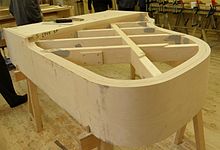 While many companies make hardwood rims are made by laminating thin (hence flexible) strips of hardwood plywood, bending them to the desired shape immediately after the application of glue, high end manufacturers like Bösendorfer use a solid piece of wood. Bösendorfer, the Austrian manufacturer of high quality pianos, constructs their rim from spruce, the very same wood that the soundboard is made from. Their idea is to concertedly involve the cabinet in the projection and coloration of sound. The loss of energy into the Bösendorfer case alters the instrument's tone, giving it perhaps less power but a complex and unusually resonant sound.