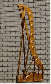 The tall, vertically strung upright grand was arranged like a grand set on end, with the soundboard and bridges above the keys, and tuning pins below them. The term was later revived by many manufacturers for advertising purposes. Giraffe, pyramid and lyre pianos were arranged in a somewhat similar fashion in evocatively shaped cases.