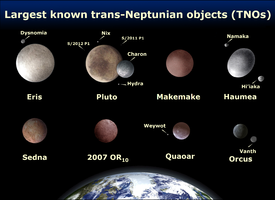| Pluto | Kuiper belt object beyond the orbit of Neptune. In 2006, Pluto was reclassified as a dwarf planet. |