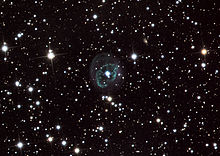 A planetary nebula, more correctly known as a stellar-remnant nebula , is an emission nebula consisting of an expanding glowing shell of ionized gas ejected during the asymptotic giant branch phase of certain types of stars late in their life. The term for this class of objects is a misnomer that originated in the 1780s with astronomer William Herschel, because when viewed through his telescope, these objects were somewhat similar in appearance to Uranus, the planet which he had recently discovered. Herschel's name for these objects was adopted by astronomers and has not been changed, even though planetary nebulae are unrelated to the planets of the solar system. They are a relatively short-lived phenomenon, lasting a few tens of thousands of years, compared to a typical stellar lifetime of several billion years.