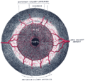 The iris is a contractile structure, consisting mainly of smooth muscle, surrounding the pupil. Light enters the eye through the pupil, and the iris regulates the amount of light by controlling the size of the pupil. The iris contains two groups of smooth muscles; a circular group called the sphincter pupillae, and a radial group called the dilator pupillae. When the sphincter pupillae contract, the iris decreases or constricts the size of the pupil. The dilator pupillae, innervated by sympathetic nerves from the superior cervical ganglion, cause the iris to dilate when they contract. These muscles are sometimes referred to as intrinsic eye muscles.