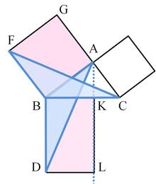 - Therefore rectangle BDLK must have the same area as square BAGF = AB2.