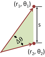 using the trigonometric product-to-sum formulas. This formula is the law of cosines, sometimes called the Generalized Pythagorean Theorem. From this result, for the case where the radii to the two locations are at right angles, the enclosed angle Δθ = π/2, and the form corresponding to Pythagoras' theorem is regained: