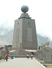 La Mitad del Mundo (the middle of the world) is a small village administered by the prefecture of the province of Pichincha, 35 kilometres (22 mi) north of Quito. It has since been determined, with the use of Global Positioning System technology, that the actual equator is some 240 metres (790 ft) north of the monument area.