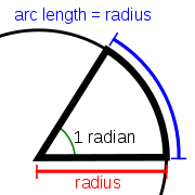 One radian is the angle subtended at the centre of a circle by an arc of circumference that is equal in length to the radius of the circle.