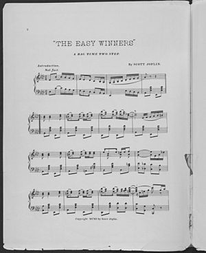The first page of "The Easy Winners" by Scott Joplin, showing ragtime rhythms and syncopated melodies.