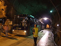- Service tunnel of the Channel Tunnel between the United Kingdom and France (underground and not open to the public) – 50.92310°N 1.78093°E