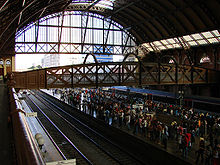 The two major São Paulo railway stations are Luz and Julio Prestes in the Luz/Campos Eliseos region. Luz is the seat of the Santos- Jundiaí line which historically transported international immigrants from the Santos port to São Paulo and the coffee plantation lands in the Western region of Campinas. Julio Prestes connected Southwest São Paulo State and Northern Paraná State to São Paulo. Agricultural products were transferred to Luz Station from which they headed to the Atlantic ocean and overseas. Julio Prestes stopped transporting passengers through the Sorocabana or FEPASA lines and now only has limited suburban service. Due to its acoustics and interior beauty, surrounded by Greek revival columns, part of the rebuilt station was transformed into the São Paulo Hall.