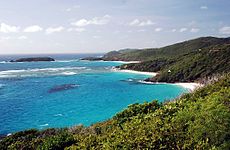 Saint Vincent and the Grenadines lies to the west of Barbados south of Saint Lucia and north of Grenada in the Windward Islands of the Lesser Antilles, an island arc of the Caribbean Sea. The islands of Saint Vincent and the Grenadines include the main island of Saint Vincent 344 km2 (133 sq mi) and the northern two-thirds of the Grenadines 45 km2 (17 sq mi), which are a chain of small islands stretching south from Saint Vincent to Grenada.