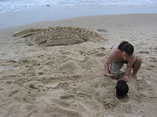 Burying someone up to his/her neck in sand, or burying oneself, is another popular beach activity.