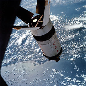 A couple of hours after TLI the Apollo Command Service Module (CSM) separated from the third stage, turned 180 degrees, and docked with the Lunar Module (LM) which rode below the CSM during launch. The CSM and LM then separated from the third stage.