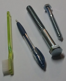 More generally, screw may mean any helical device, such as a clamp, a micrometer, a ship's propeller or an Archimedes' screw water pump.