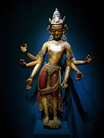A Nepalese polychrome wooden statue of the Malla Kingdom, 14th century.